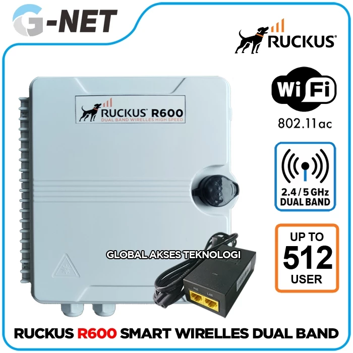 Ruckus AP R600 AP, dual band AC 2.4 GHz dan 5.8 Ghz, sangat cocok untuk yang membutuhkan WiFi yang stabil dan handal dan kemampuan kapasitas user yg lebih tinggi maximal 500 user, bisa digunakan dengan semua koneksi internet (indiehome,biznet,first media dan lain2) baik digunakan di meeting room, office, warkop,sekolah, universitas, rumah sakit dan lain2 tanpa ngehang 24 jam sehari On